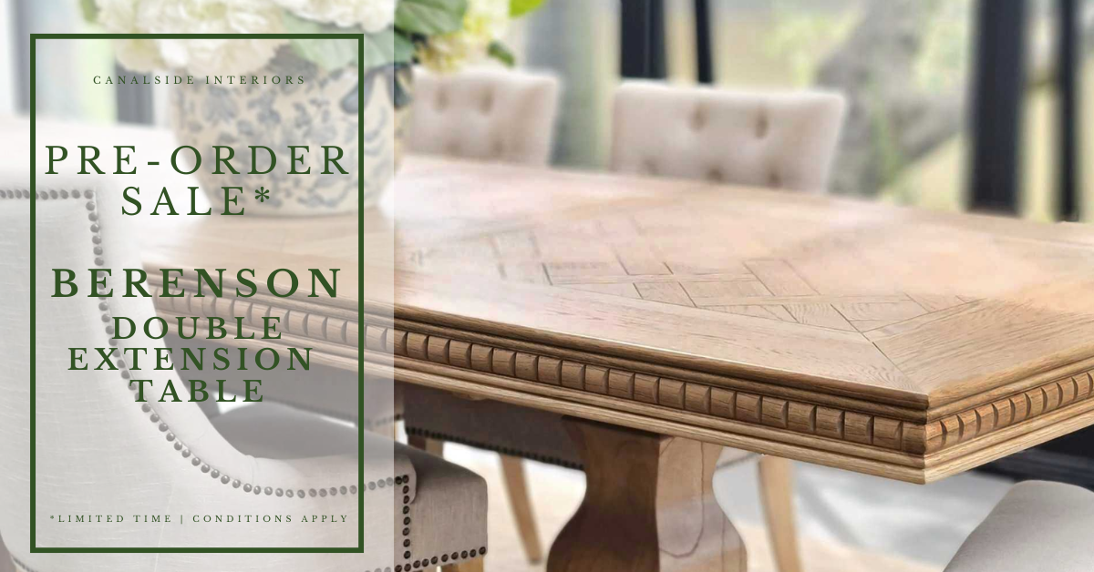 Berenson Oak Parquetry Double Extension Dining Table - Pre-Order Oct - SALE $4885 $4,885.00 incl GST $7,295.00 Discover the exquisite Berenson Oak Parquetry Extendable Dining Table, exclusively designed in the U…